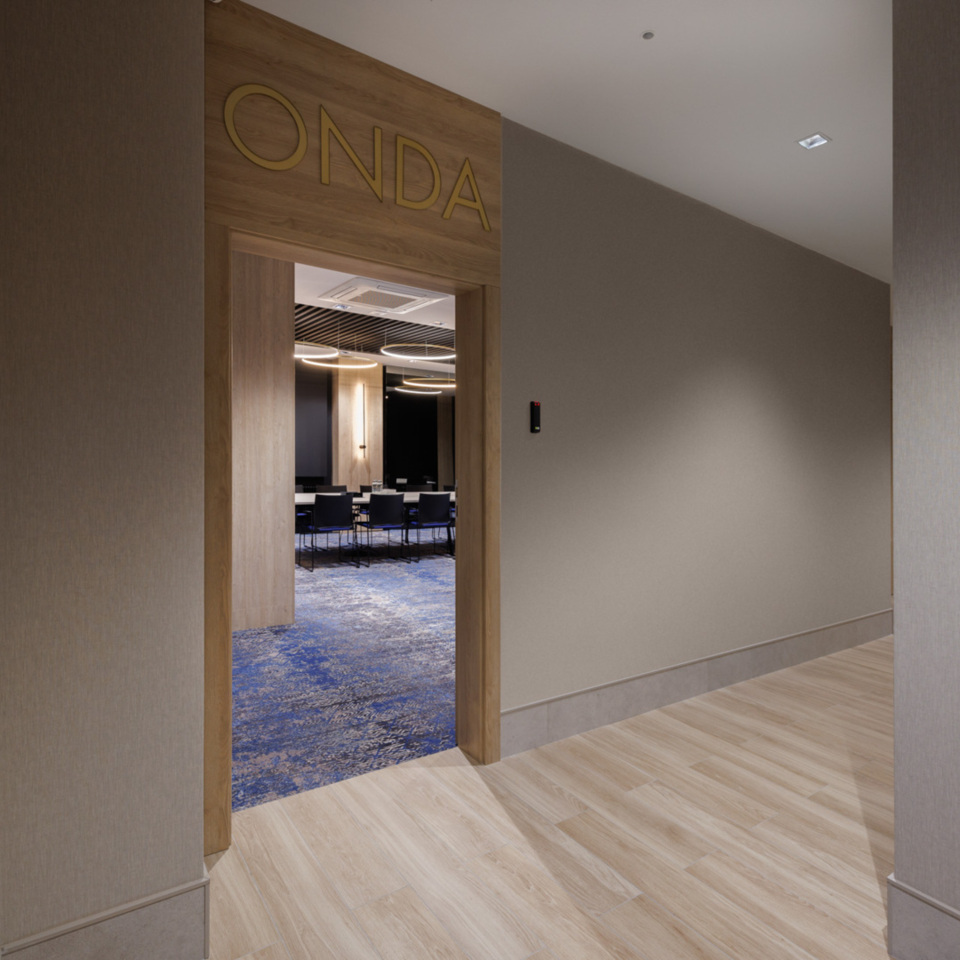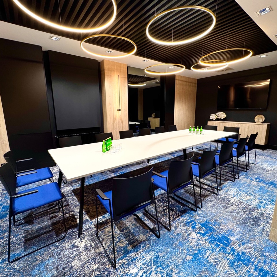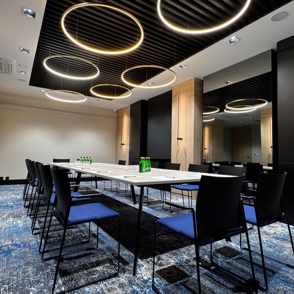 Sala konferencyjna Onda to kameralna przestrzeń stworzona z myślą o spotkaniach biznesowych, warsztatach i szkoleniach dla małych grup . Dzięki nowoczesnemu wyposażeniu, w tym multimedialnemu projektorowi, systemowi nagłośnienia oraz szybkiemu dostępowi do internetu, zapewnia komfortowe warunki do pracy. Elegancki wystrój oraz dobre oświetlenie tworzą sprzyjającą koncentracji atmosferę. Sala Onda jest idealnym miejscem dla małych zespołów, które poszukują profesjonalnego i wygodnego miejsca na swoje spotkania.